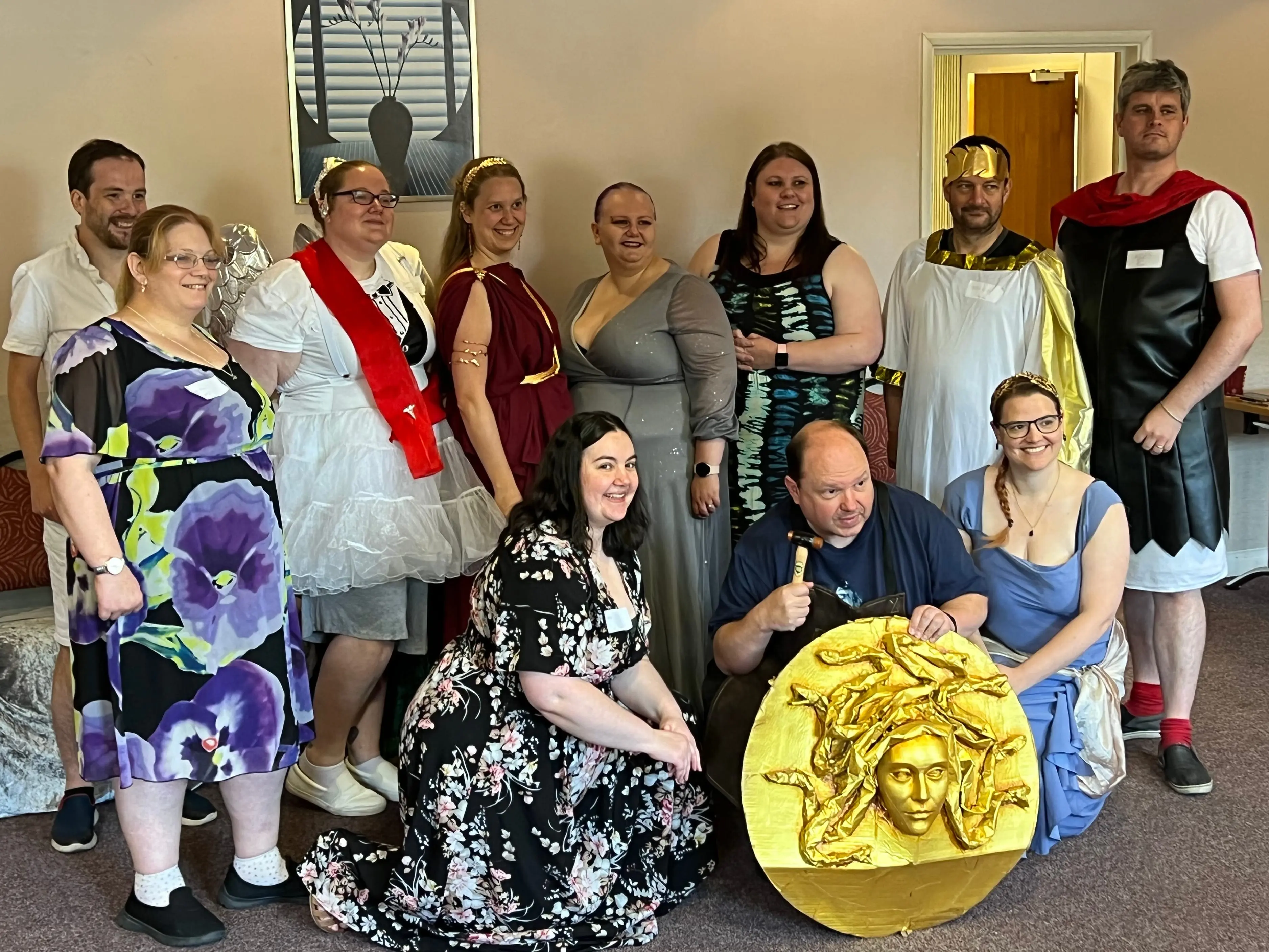 This game is set in ancient Greece but there are no specific costume requirements, Gods can wear what they like!